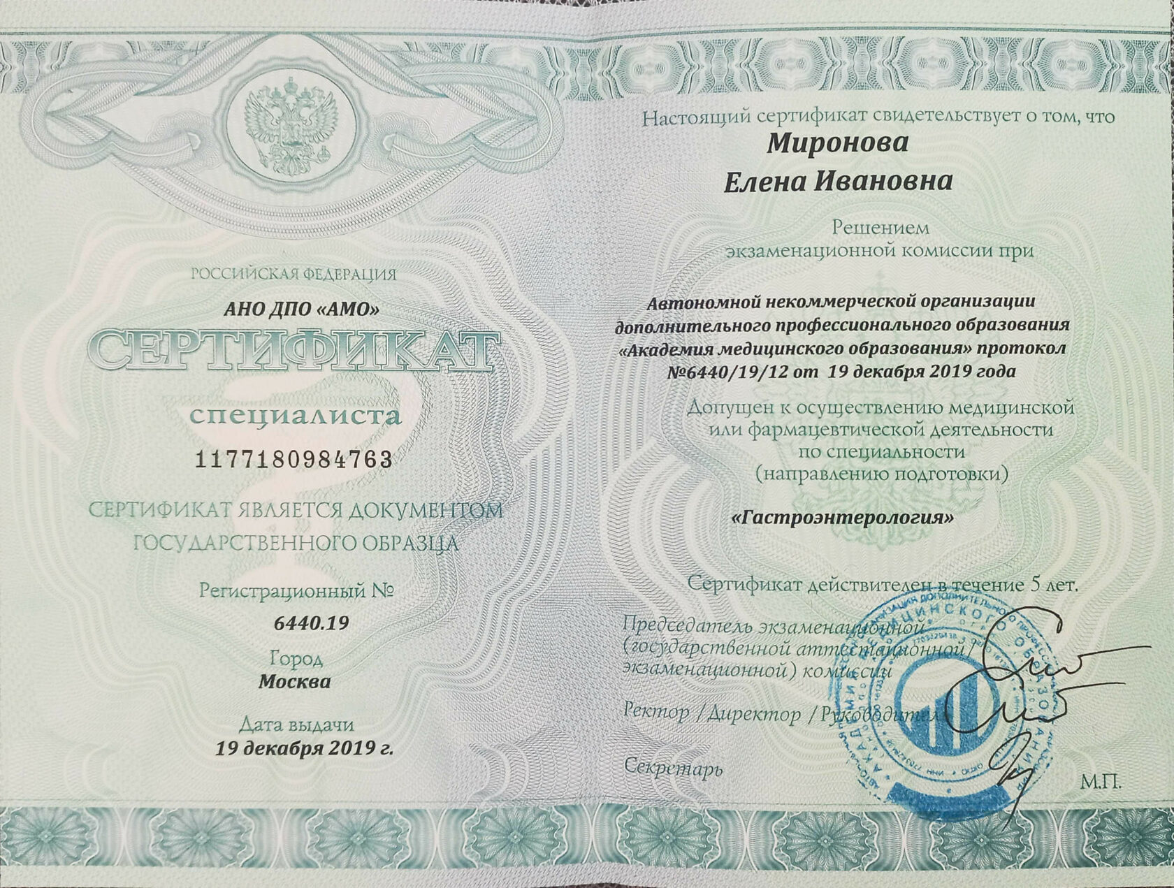 Сертификат по гастроэнтерологии